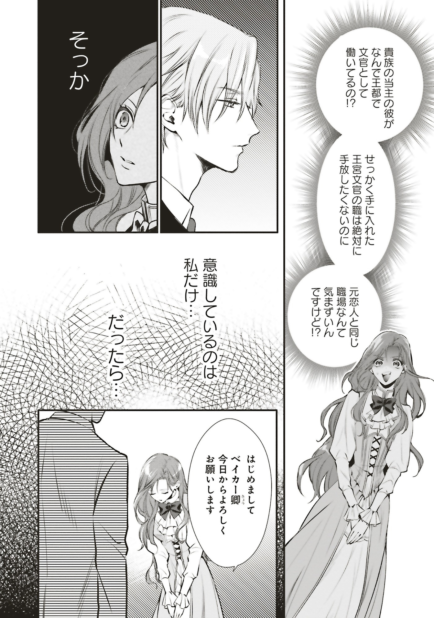 急逝した兄に代わり子爵家を継いだはずの別れた元恋人・デニスが、王宮文官に転職したウェンディの前に上司として現れた。