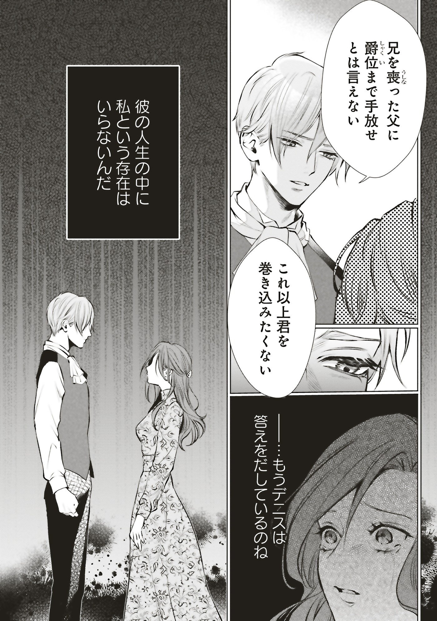 三年前と相変わらず優しく自分を守ってくれるデニスに戸惑いつつも、立場をわきまえるウェンディはデニスと距離を置こうとする。