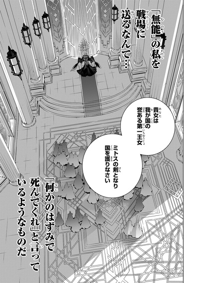 魔力を持たず『無能』と蔑まれる王女エレクトラ。厄介払いで送り込まれた戦場で、帝国軍を率いる聖王サイリュスと出会う。